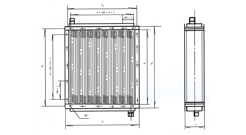 1Cr18Ni9Ti(不銹鋼)制空氣熱交換器是本公司在針對(duì)原鋼制GLⅡ型散熱排管的不耐腐蝕、不潔凈、易生銹、壽短的缺陷而改進(jìn)設(shè)計(jì)替換傳熱系數(shù),然而能代替其它銅制、鋼制散熱排管的蒸汽型熱交換器新產(chǎn)品,其外尺寸與鋼GLⅡ一致。