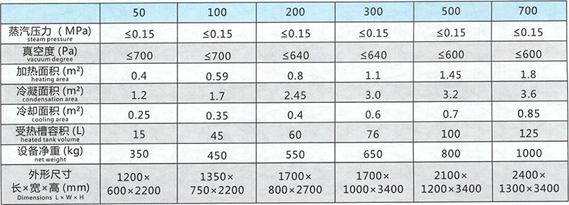 本設備主要包括濃縮罐、冷凝器、汽液分離器、冷卻器、受液桶六個部件組成,由不銹鋼制造。濃縮罐為夾套結構、冷凝器為列管式,冷卻器為盤管式。